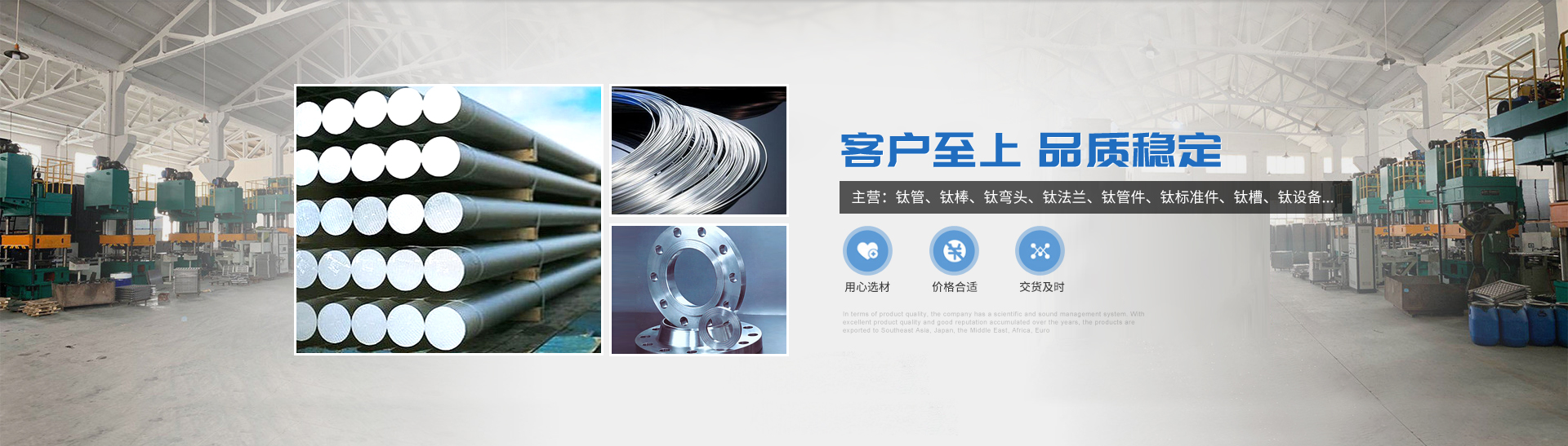 本公司的主營產(chǎn)品鈦制品有,鈦管,鈦棒,鈦彎頭,鈦法蘭,鈦管件,鈦標準件,鈦槽,鈦設備,鈦沖壓彎頭等。所生產(chǎn)各種規(guī)格的鈦制品主要運用于化工、電鍍、石油、電子、環(huán)保、海洋等領域"以質量求生存,靠服務求發(fā)展“為宗旨,客戶的滿意是我們的追求,歡迎各界用戶來函來電,傳真,洽談貿易。